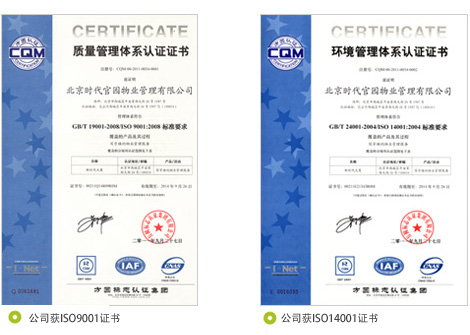 公司建立了一套標(biāo)準(zhǔn)化的服務(wù)控制體系和運(yùn)行機(jī)制,通過(guò)了ISO9001:2008質(zhì)量和ISO14001:2004環(huán)境管理體系認(rèn)證,獲得北京市消防先進(jìn)單位等多項(xiàng)榮譽(yù),其管理的官園新時(shí)代大廈榮獲了北京市物業(yè)管理示范大廈(四星級(jí))榮譽(yù)稱號(hào)。