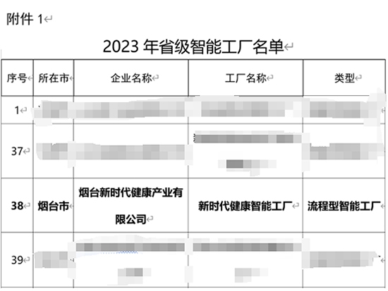 11月14日,山東省工業(yè)和信息化廳公布了2023年省級智能工廠名單,煙臺新時代健康產業(yè)有限公司(簡稱煙臺健康公司)獲評“山東省級智能工廠”。