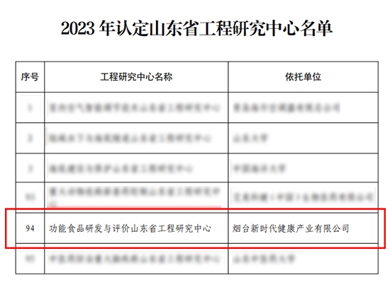 近日,山東省發(fā)展和改革委員會(huì)發(fā)布了2023年認(rèn)定山東省工程研究中心名單。作為公司大健康公地建設(shè)重要項(xiàng)目,由健康產(chǎn)業(yè)公司煙臺(tái)生產(chǎn)基地牽頭,聯(lián)合山東省食品藥品檢驗(yàn)研究院共建的“功能食品研發(fā)與評(píng)價(jià)山東省工程研究中心”成功獲批。