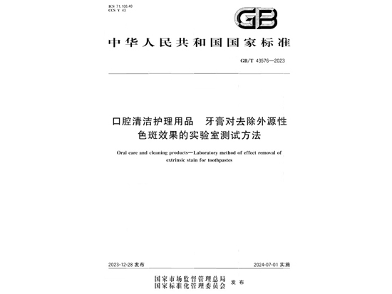 近日,健康產(chǎn)業(yè)公司參與制定的國(guó)家標(biāo)準(zhǔn)《漱口水》(GB/T 43543-2023)、《口腔清潔護(hù)理用品 牙膏對(duì)去除外源性色斑效果的實(shí)驗(yàn)室測(cè)試方法》(GB/T 43576-2023)正式發(fā)布。健康產(chǎn)業(yè)公司在這兩項(xiàng)標(biāo)準(zhǔn)的制定過(guò)程中,積極參與項(xiàng)目調(diào)研、完成技術(shù)指標(biāo)要求的研究和試驗(yàn)驗(yàn)證等工作并作出了突出貢獻(xiàn)。