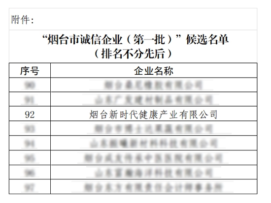 煙臺健康公司獲評“煙臺市2024年首批誠信典范企業(yè)”榮譽(yù)稱號 |