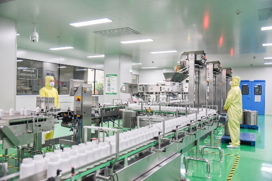 在降低能耗上下狠功夫的同時,園區(qū)在推動資源循環(huán)利用上頻出實(shí)招,一方面委托具備資質(zhì)的物資回收公司將生產(chǎn)過程原輔料包裝材料全部回收,使工業(yè)固體廢物綜合利用率達(dá)到100%,另一方面將生產(chǎn)過程中產(chǎn)生的廢水收集到廠區(qū)污水站深度處理后,用于灌溉園區(qū)的花草樹木,讓資源在循環(huán)利用中發(fā)揮最大效益。 當(dāng)前,園區(qū)已經(jīng)全面通過ISO9001、ISO14001、ISO22000、ISO45001、ISO50001國際體系認(rèn)證,在食品安全、產(chǎn)品質(zhì)量、環(huán)境保護(hù)等領(lǐng)域均達(dá)到國內(nèi)領(lǐng)先水平。 GMP車間里藏著“綠色密碼” 洗手、消毒、換衣、除塵……每一位進(jìn)入園區(qū)生產(chǎn)車間的人員都要經(jīng)過這一系列繁瑣的程序。反光的地面、不著一絲污跡的角落、自動化運(yùn)轉(zhuǎn)的精密儀器、燈火通明的車間,這里看上去更像是一間偌大的、枕戈待旦的手術(shù)室。